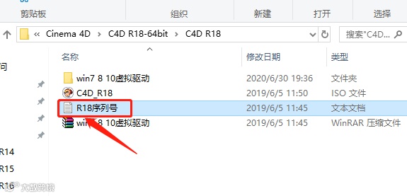 24.返回到【Cinema4D R18】安装包,打开【R18序列号】文本。
