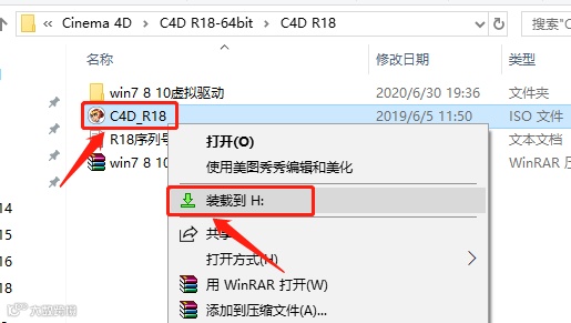 16.返回到【Cinema4D R18】安装包,鼠标右击【C4D_R18】,选择【装载到·····】。