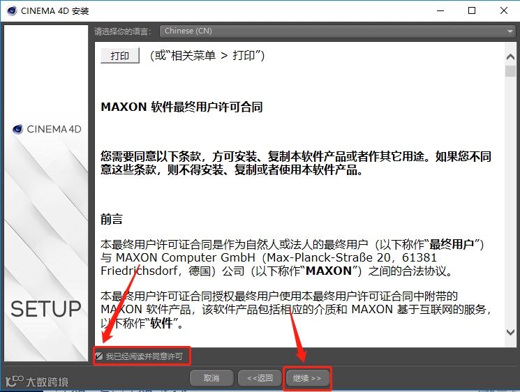 29.勾选【我已阅读并同意许可】,点击【继续】。