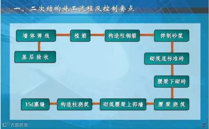 在框架、剪力墙、框剪工程中的一些非承重的砌体、构造柱、过梁、止水反梁、女儿墙、压顶、填充墙、隔墙、后浇带等等一些在装饰前需要完成的部分,称为二次结构。