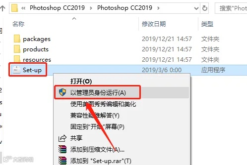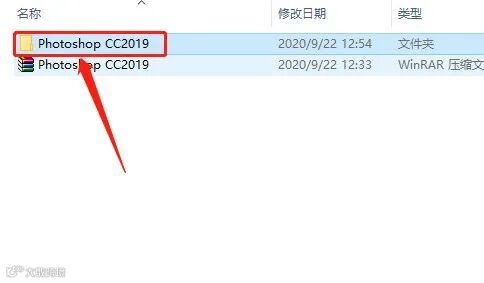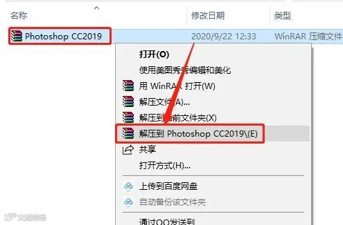 1.下载ps2019软件安装包,鼠标右击压缩包选择【解压到photoshop CC2019】。