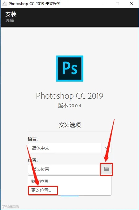 6.ps cc2019的安装路径建议安装在处C盘以外的磁盘,用户可自行设置,设置好安装路径后点击【确定】。