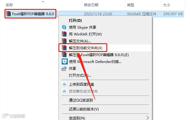 1.下载软件安装包,鼠标右击压缩包选择【解压到当前文件夹】。