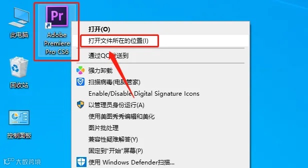 16.在桌面上鼠标右击【Premiere Pro CS6】软件图标,选择【打开文件所在的位置】。