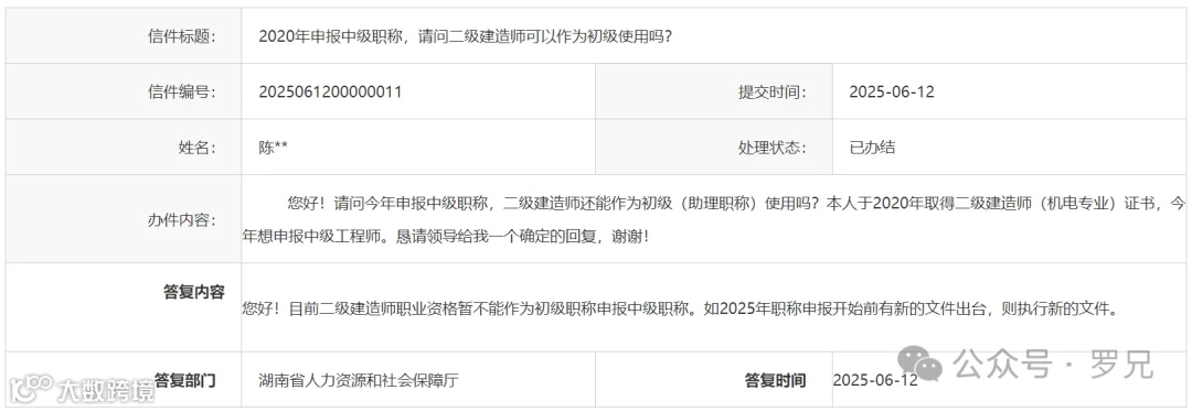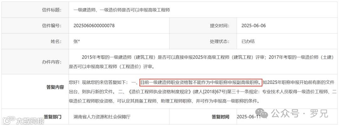 根据人社部《关于深化工程技术人才职制度改革的指导意见》,持有一建证书可直接按中级职称申报副高。但湖南网友实测发现: