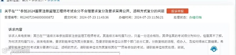 诉求人来电反映:其已在***连续三年参加国家注册监理工程师考试,其