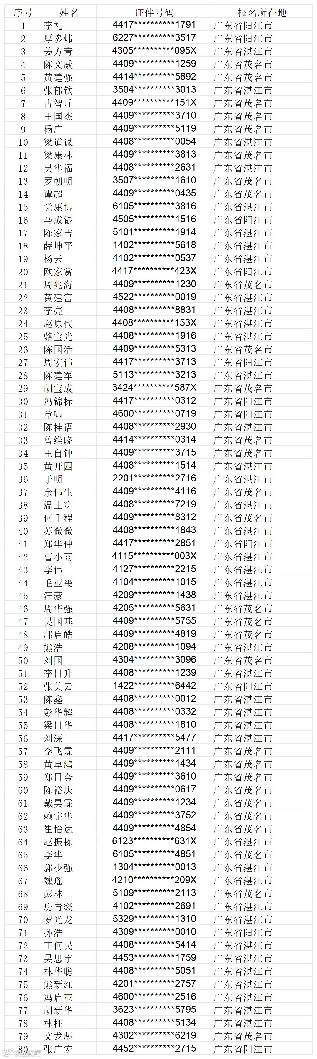 广东省2024年度一级建造师职业资格考试全科成绩合格人员名单(部分)
