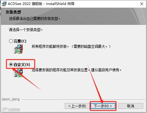 6.点击【自定义】,点击【下一步】。