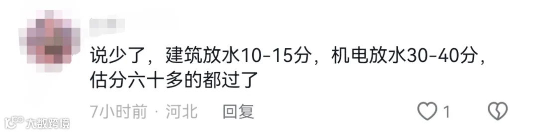 对于网络上的这些评论,我们不能一概而论。每年考试后,都会有人抱怨压分,也会有人觉得放水。然而,今年的情况确实显得有些不同寻常。建筑专业的高分考生明显增多,机电专业的通过率也似乎有所上升,这不禁让人怀疑,今年是否真的“放水”了?