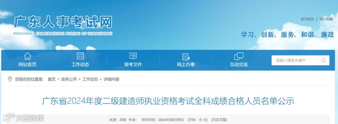 根据《人力资源社会保障部办公厅关于印发<专业技术人员职业资格考试考务工作规程>的通知》(人社厅发〔2021〕18号)、及告知承诺制相关要求,现对广东省2024年度二级建造师执业资格考试全科成绩合格人员予以公示,共22108人(详见附件1)。