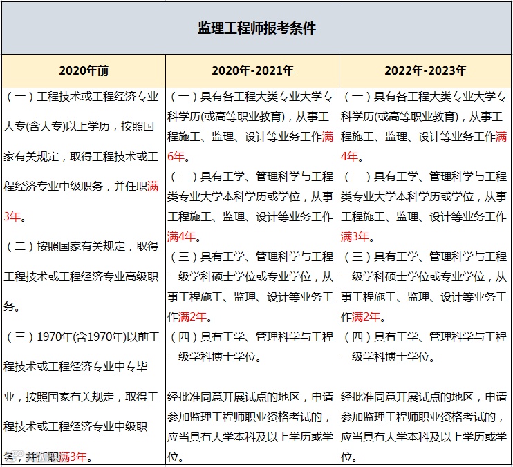 2准入门槛:监理报名条件降低但是依旧存在专业、学历、工作年限的要求,并不是人人准入的。