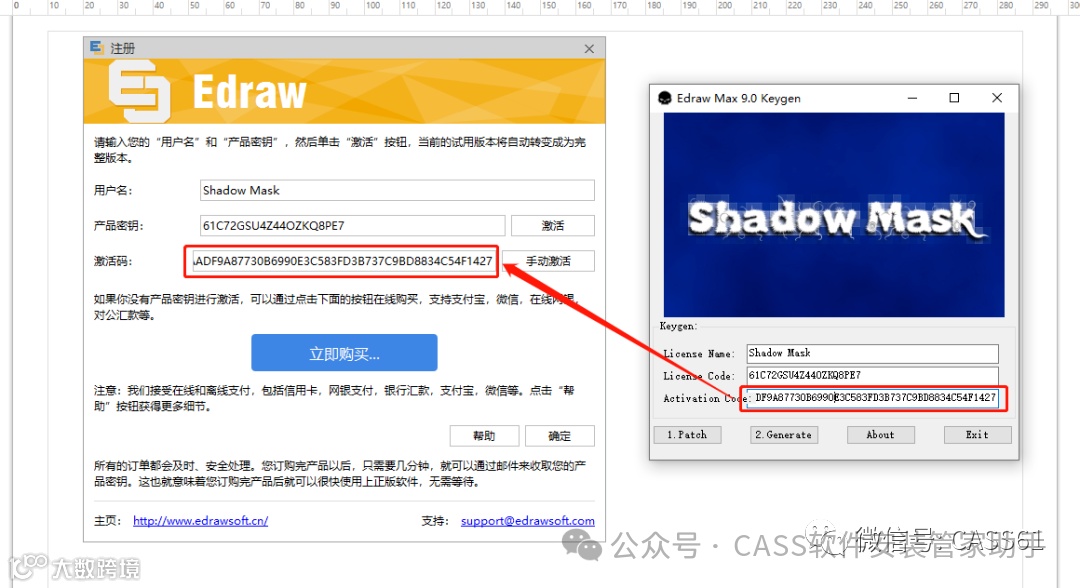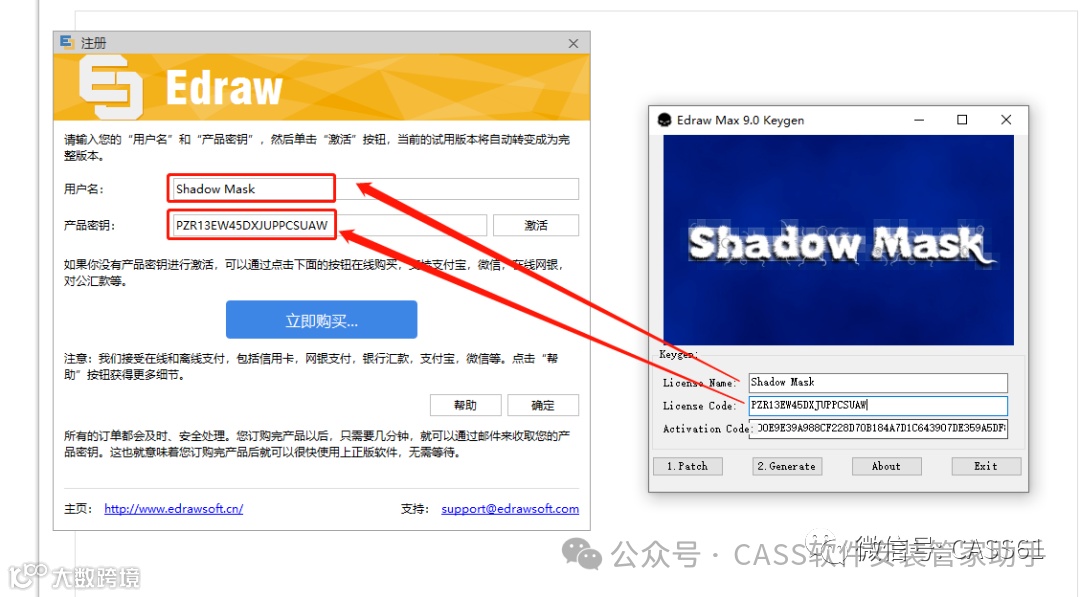 22.将用户名和密钥分别粘贴至软件的注册界面;