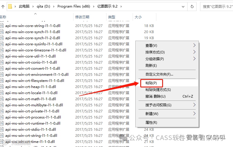 16.在打开的文件夹空白处,鼠标右击【粘贴】所有文件;