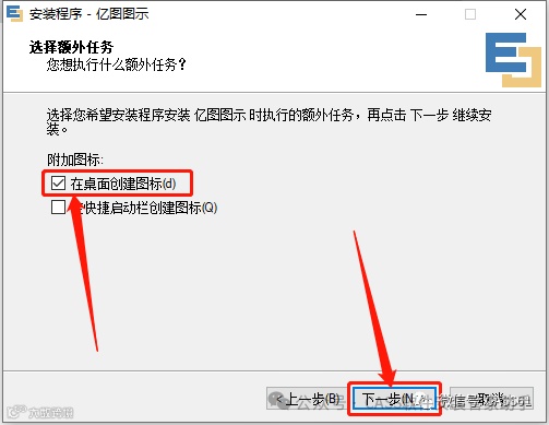 9.勾选【在桌面创建图标】,点击【下一步】;