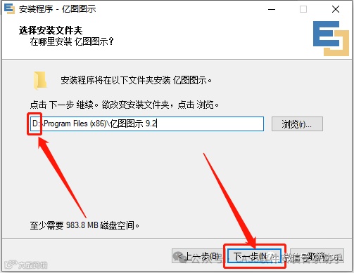 7.设置软件的安装路径,直接将C改为其它磁盘,点击【下一步】;