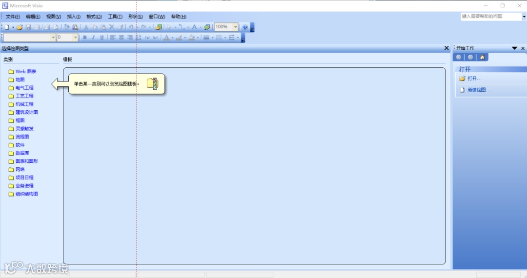 10.在桌面左下角开始菜单栏中打开Visio 2003软件。