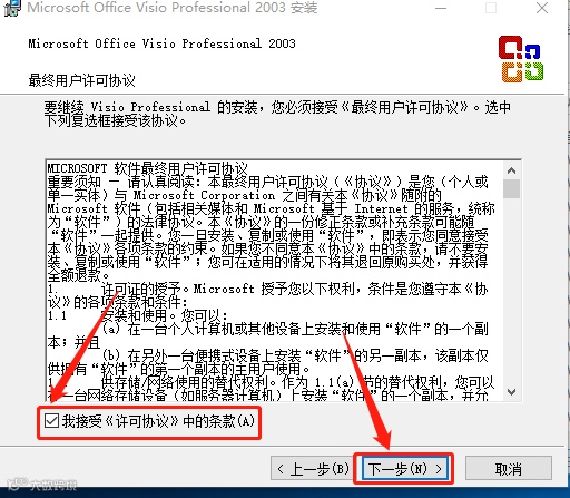8.勾选【我接受许可条款】,然后点击【下一步】。