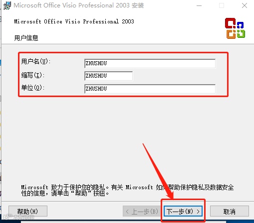 7.填写用户信息,随便填写,然后点击【下一步】。