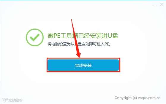 13. PE系统U盘制作完成(U盘内容为空文件,然后将下载的windows系统文件下载至此U盘内即可)。