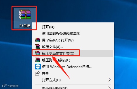 6. 鼠标右击“PE系统”压缩包,选择“解压到当前文件夹”。