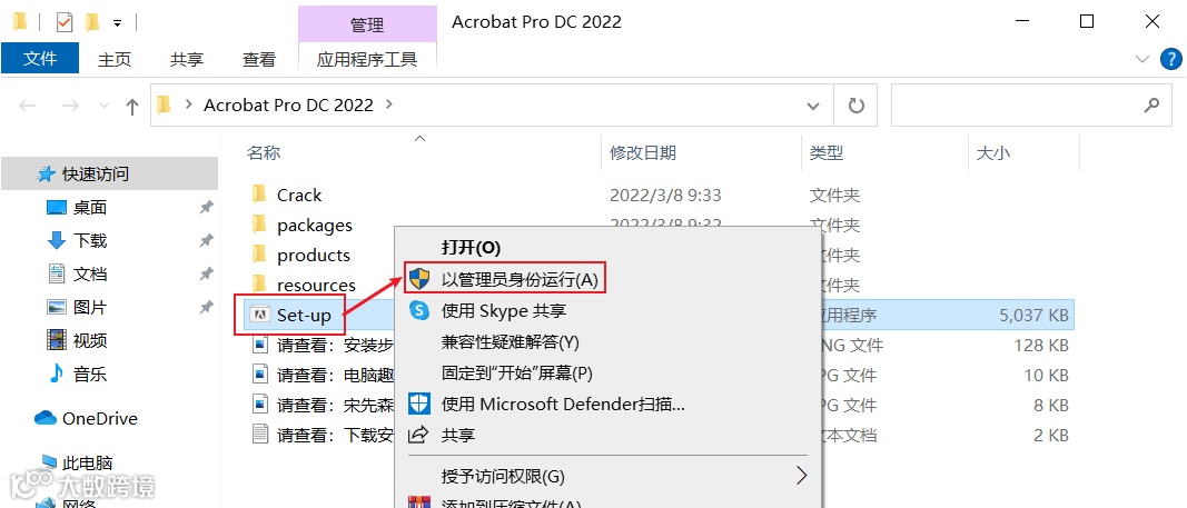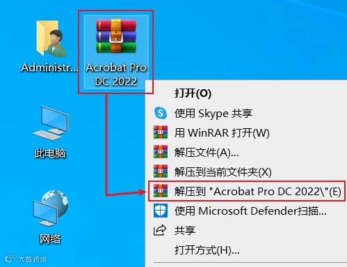 1、选中安装包,鼠标右击【Acrobat Pro DC 2022】选择【解压到Acrobat Pro DC 2022\E】;