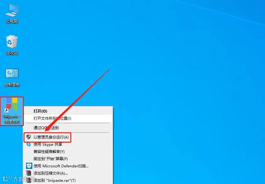 4.桌面上找到Snipaste,右击选择【以管理员身份运行】,点击F1键即可截图。
