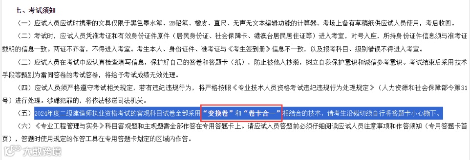 今年二建统一调整为1天考3科,试卷采用了“变换卷”模式,这一点在四川、江西、内蒙古等多地的二建报考公告中有所提及。