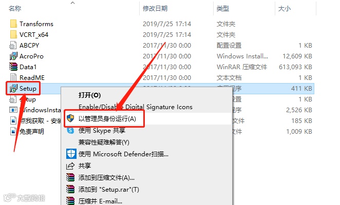4.鼠标右击【Setup】程序,选择【以管理员身份运行】。