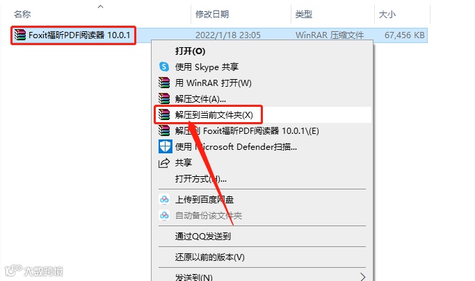 1.选中软件安装包,鼠标右击压缩包选择【解压到当前文件夹】。