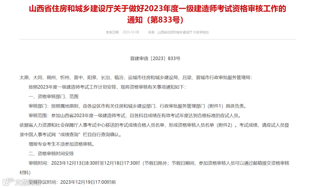 根据《专业技术人员职业资格考试报名证明事项告知承诺制工作规程》、《关于2023年度一级建造师资格考试考务工作的通知》(人考中心函〔2023〕30号)及我省《关于做好2023年度一级建造师资格考试考务工作的通知》文件规定和要求, 对2023年度一级建造师资格考试成绩合格拟取得证书人员予以公示和考后资格核查,现将有关事项通知如下: