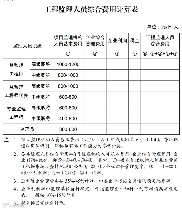 监理员:300-600元/日·人。