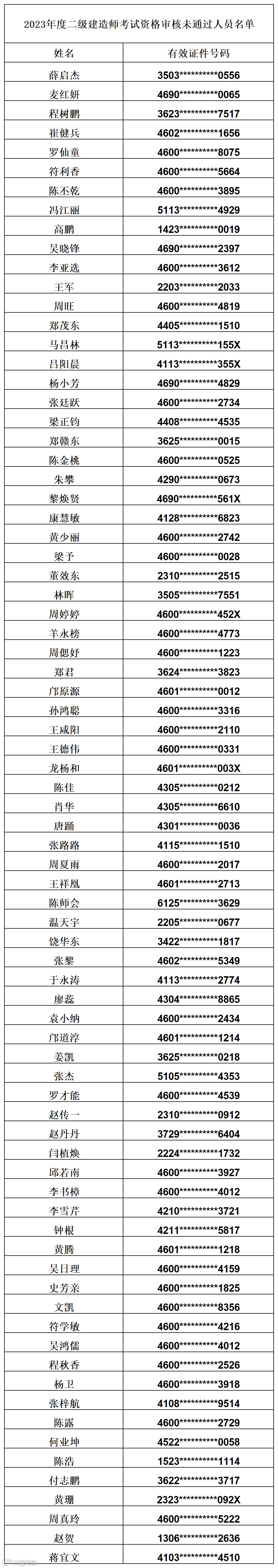 附件:2023年度海南省二级建造师考试资格审核未通过人员名单