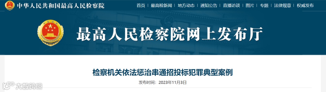11月3日,最高检发布依法惩治串通招投标犯罪典型案例。