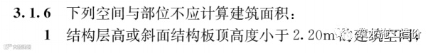 3.1.6第一款:结构层高小于2.20m的建筑空间,列为不应计算建筑面积的范围。