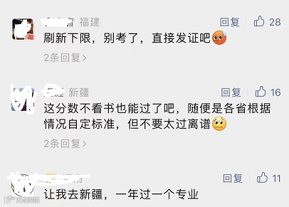 往年因为比其他省的合格线低不少,新疆受到了大家的吐槽。今年大伙以为新疆的合格线还会再创新低,结果新疆人事网硬气了一把。除了管理,其他科目合格标准全部上涨!