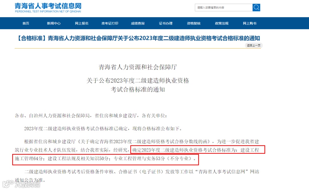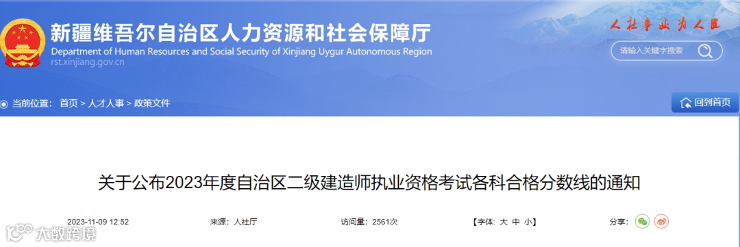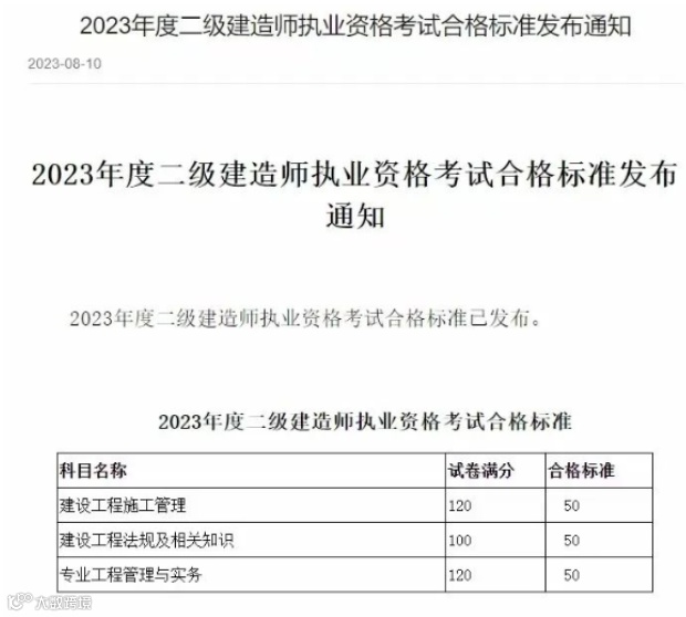 关于公布2023年度自治区二级建造师执业资格考试各科合格分数线的通知
