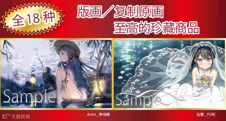 版画对特殊效果也有着很多要求,使用各种各样的大小,颜色,金粉,来提升作品的华丽度。将作者所追求的究极画面呈现。