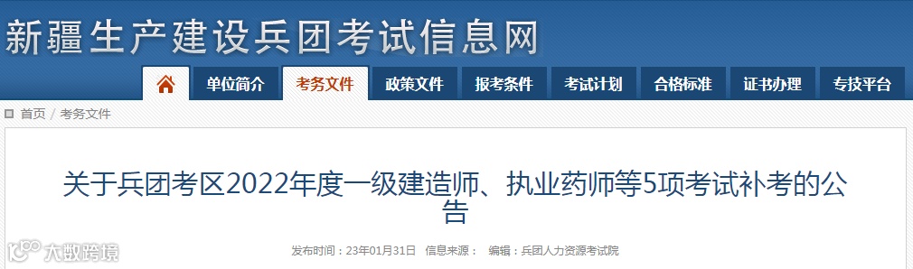 新疆生产建设兵团考试信息网公布《关于兵团考区2022年度一级建造师等5项考试补考的公告》,一建补考准考证打印时间为考前一周进行,具体详情如下: