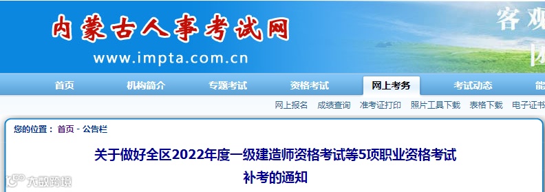 关于做好2022年度新疆考区一级建造师资格考试等5项职业资格考试补考的通知