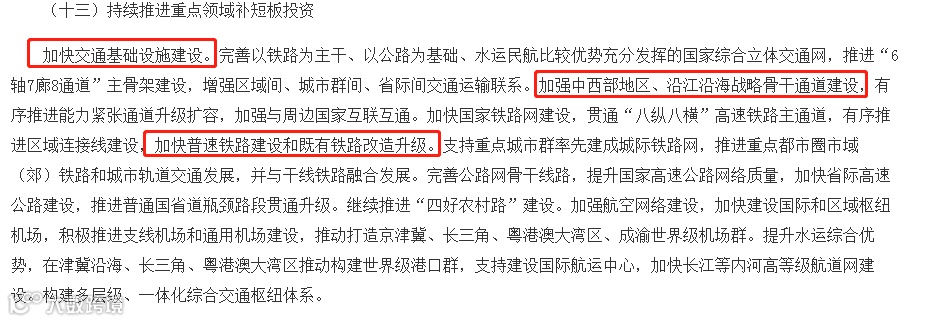 在历史上的三次“扩大内需”都有着基建发展的身影,在这次《纲要》中也提到了关于国内基建发展的内容。