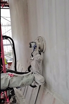 ▲外墙腻子打磨机器人作业