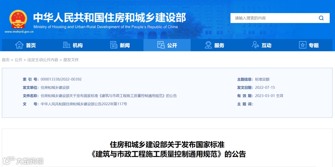 导读:近日住房和城乡建设部公布了全文强制性国家标准《建筑与市政工程施工质量控制通用规范》GB 55032-2022,自2023年3月1日起实施。