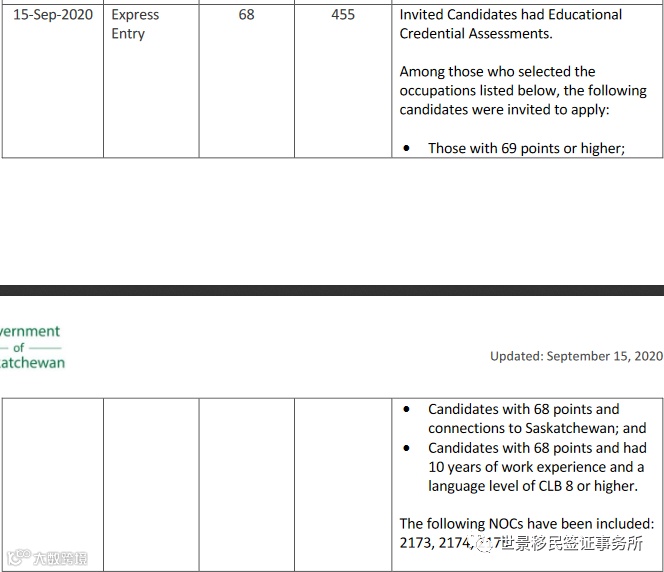 萨省技术移民无雇主类别发布了新的EOI筛选结果,此次邀请了紧缺职业类和萨省EE的申请人,最低邀请分数68分,邀请人数621人。