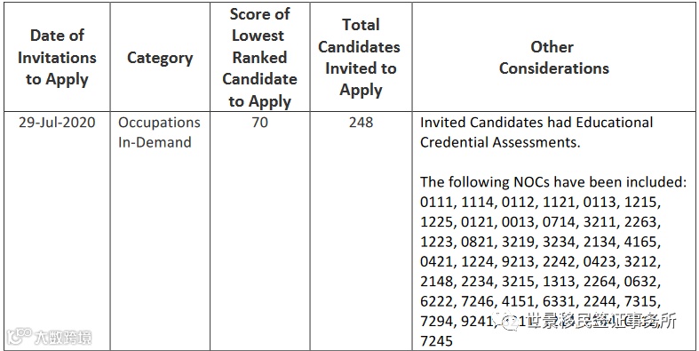 萨省技术移民无雇主类别发布了新的EOI筛选结果,此次邀请了紧缺职业类的申请人,最低邀请分数70分,邀请人数248人。