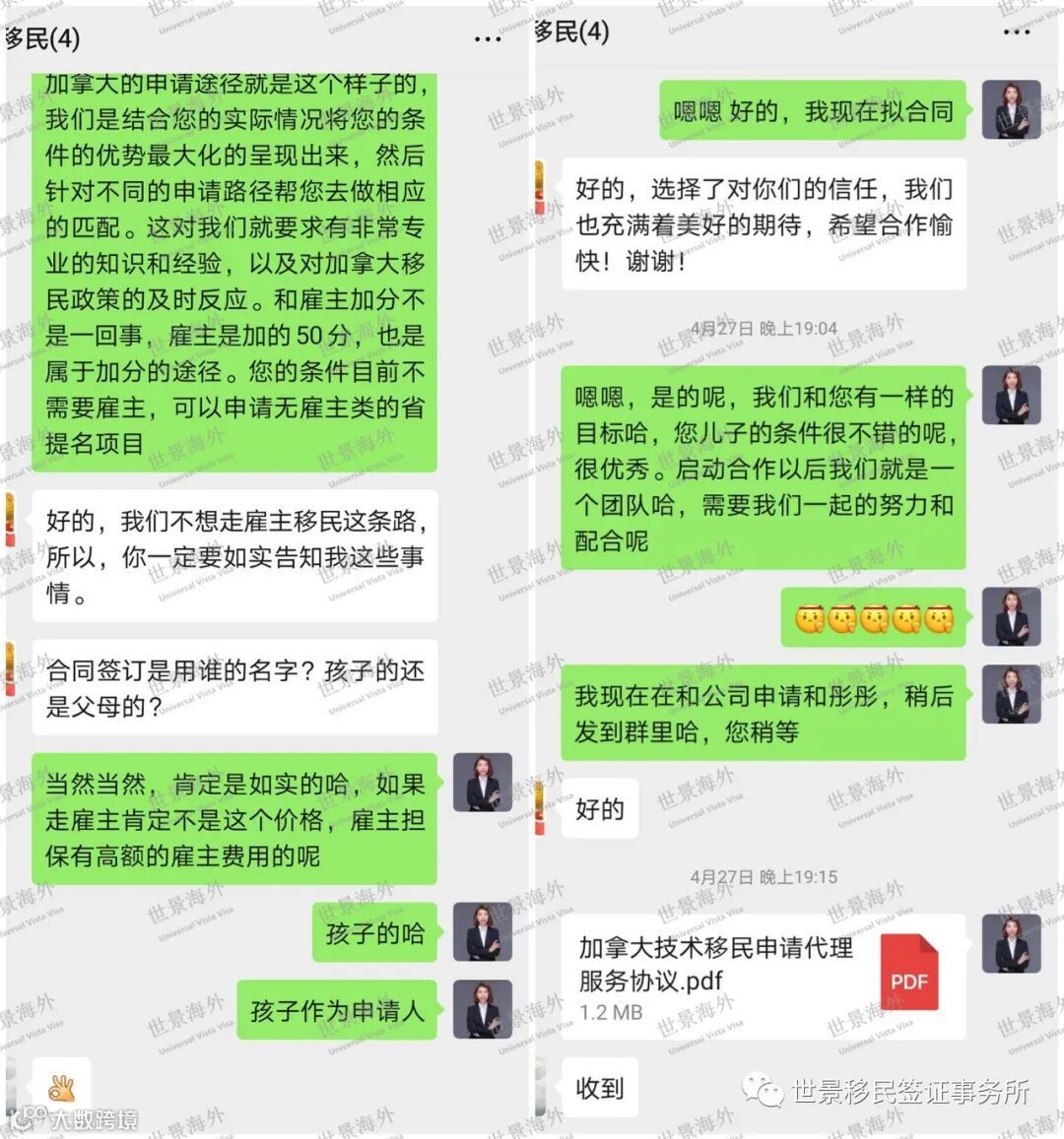 一开始联系我们的是冯妈妈,冯妈妈非常关心女儿的未来规划,了解到我们是一家专业的加拿大法定移民机构以后,与冯小姐、冯爸爸组群一起与我们联系沟通,移民加拿大的决定是一件重大的事情,一家人的意见也很一致,在全方位探讨了移民的可行性之后,一周之后即与我们签订合约,启动加拿大的移民申请!