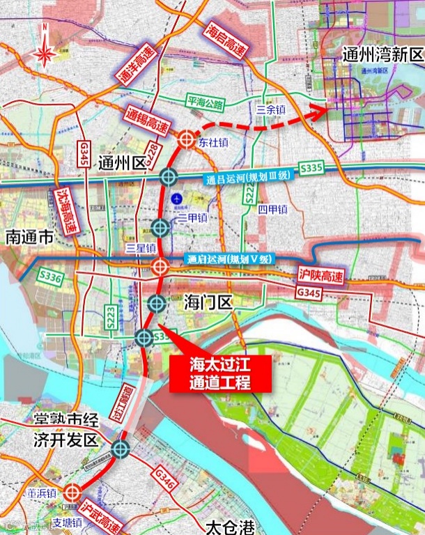 工程概况: 海太过江通道为公铁复合过江通道,是国家发改委近期重点推动实施的过江通道之一,其中公路部分为南通至常熟高速公路(S13)的重要组成部分。 项目起自沪陕高速叠石桥互通东 2.7 公里与沪陕高速交叉处,在海太汽渡西侧穿越长江,在白茆河口东侧上岸,止于沪武高速董浜枢纽互通东 5.5 公里处。 路线全长 39.07 公里,按双向六车道的高速公路标准建设,过江隧道段长 11.185 公里,采用盾构方式穿越长江,其中盾构段 9.2km,隧道断面直径达 16m。 海门南互通至碧溪互通段(含过江隧道)设计速度 100 公里/小时,其余路段设计速度 120 公里/小时。