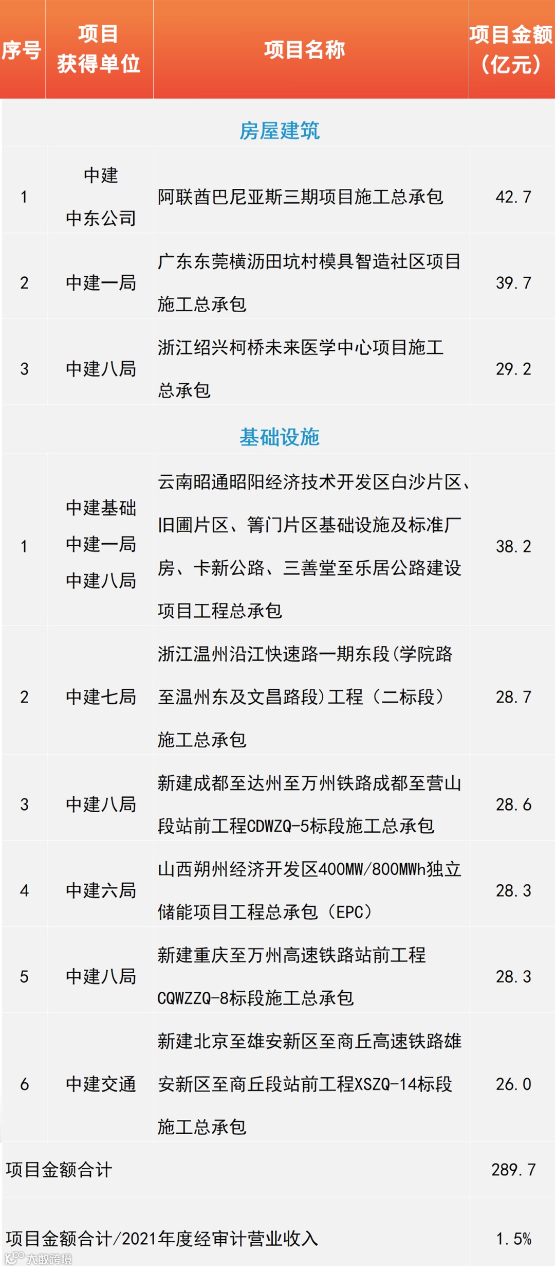 中建取得优秀的成绩,离不开各级子公司的全力付出。近期中建二局、中建八局各拿下了16亿、17.8亿大单!