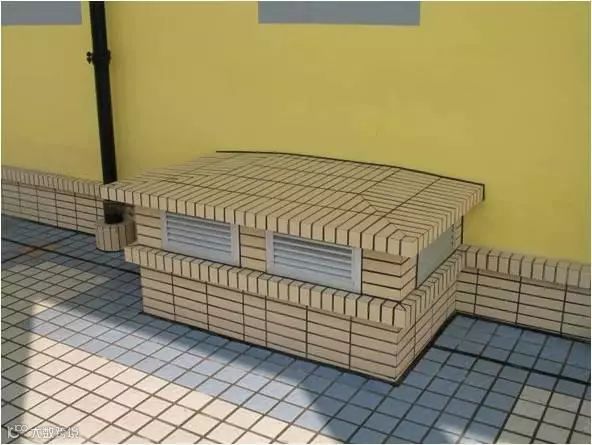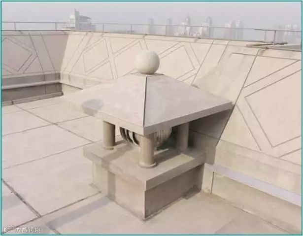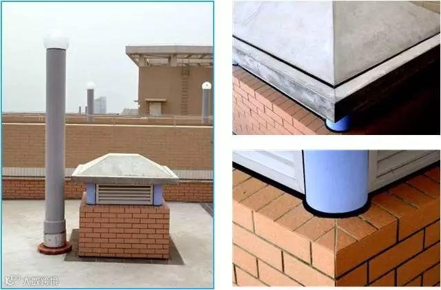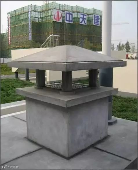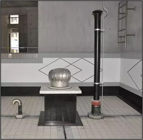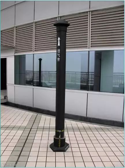 暗埋式排气孔(一般设在女儿墙和塔楼墙体上或伸入屋面风帽内。)