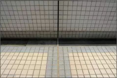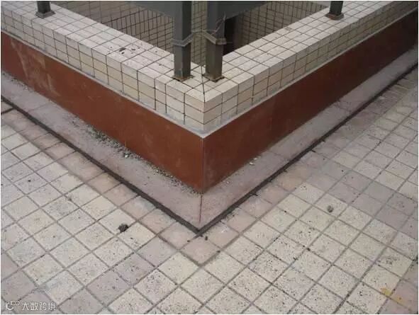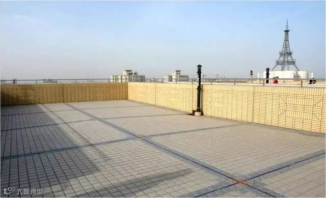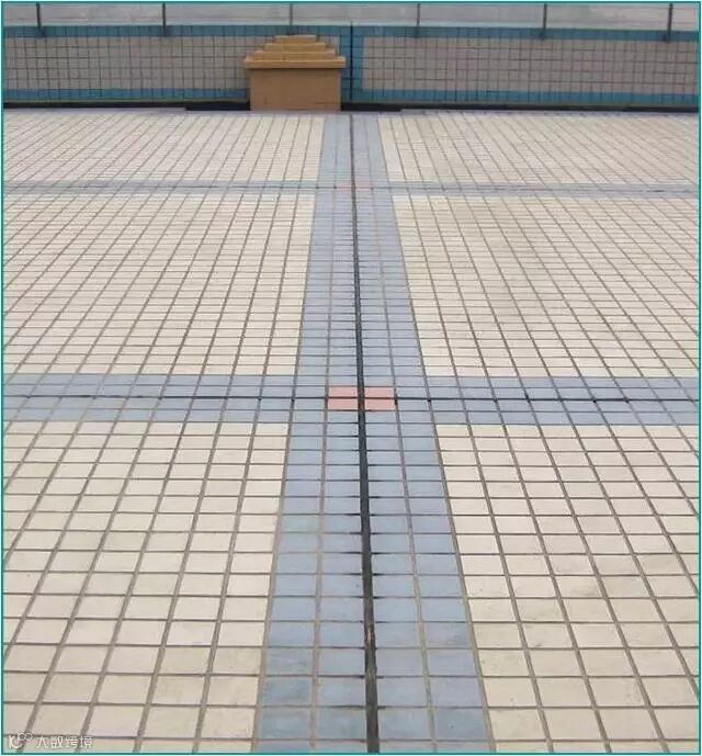 女儿墙贴砖进行图案设计,分格缝与屋面广场分格缝对缝施工。