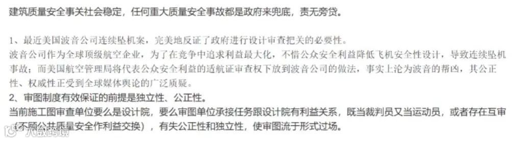 网友2:取消施工图审查是好事,但是规范上的条文如何才能形成约束力,如果单纯依靠设计院内审,那么必然后续会出大问题。